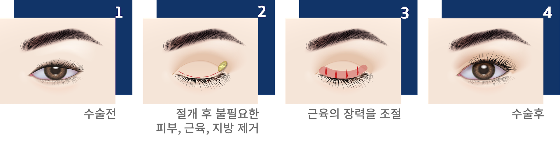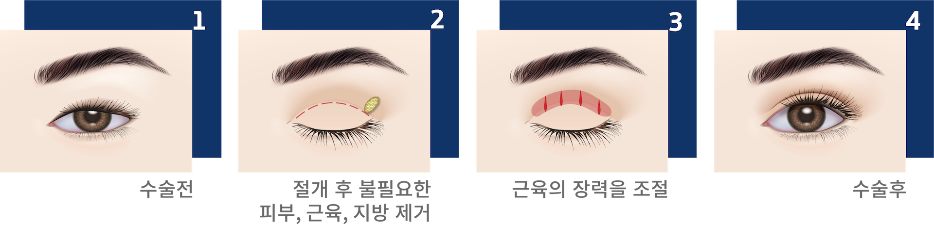 - 눈 뜨는 근육의 힘을 조절하여 보다 시원하고 또렷한 눈매를 만들 수 있습니다.