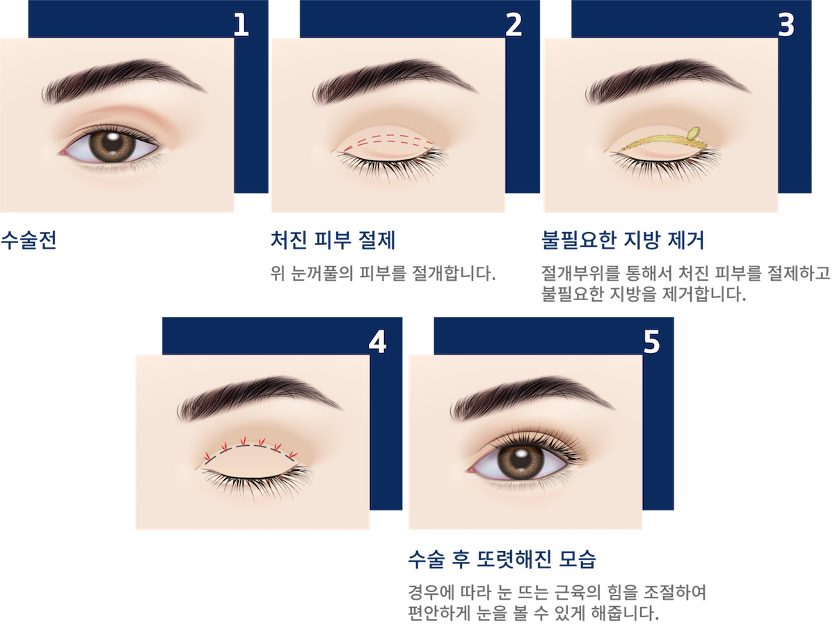 상안검 수술은 이러한 처진 눈꺼풀의 피부와 조직을 제거하여 노화 이전의 상태로 돌려주는 수술입니다.