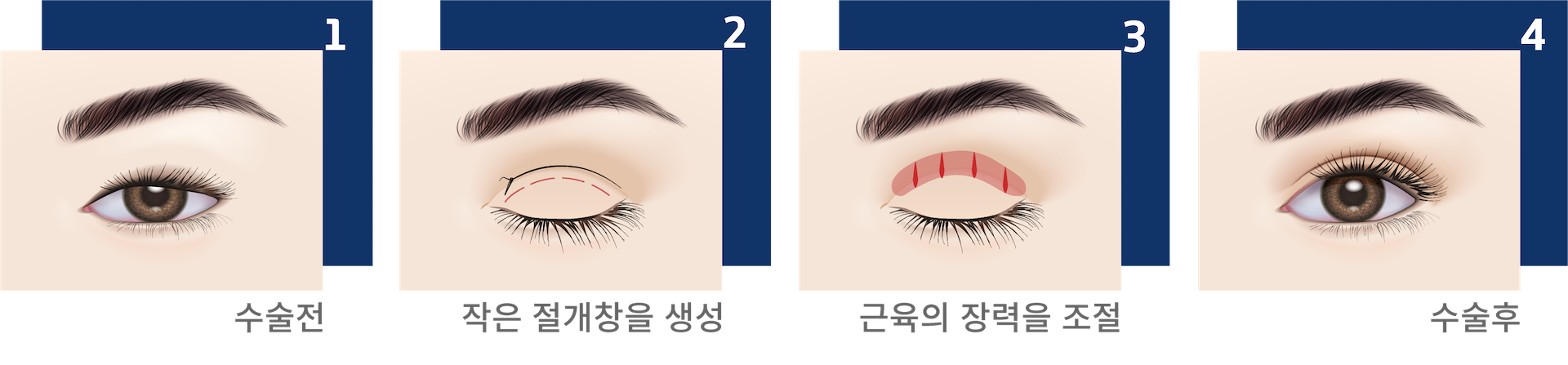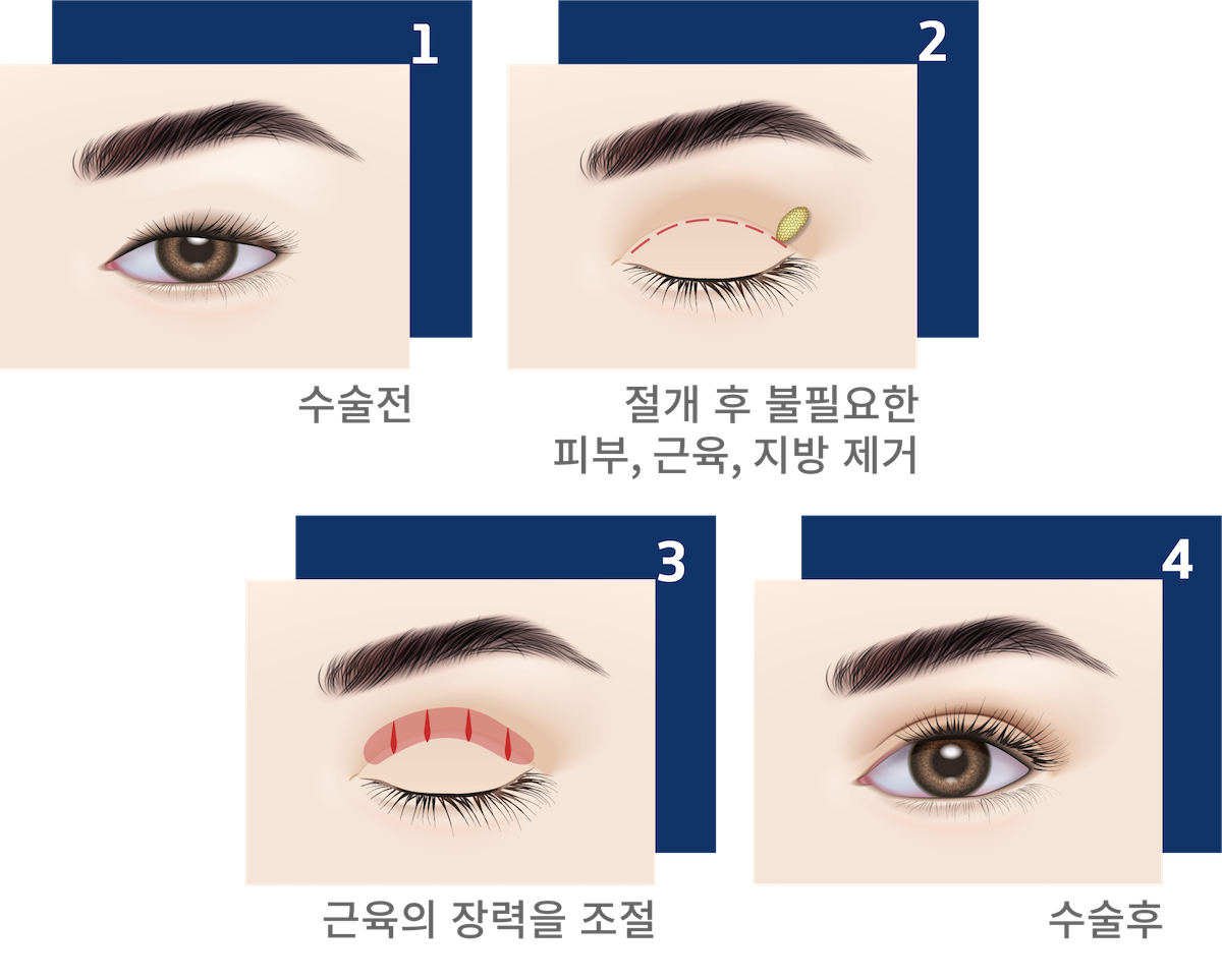 - 눈 뜨는 근육의 힘을 조절하여 보다 시원하고 또렷한 눈매를 만들 수 있습니다.